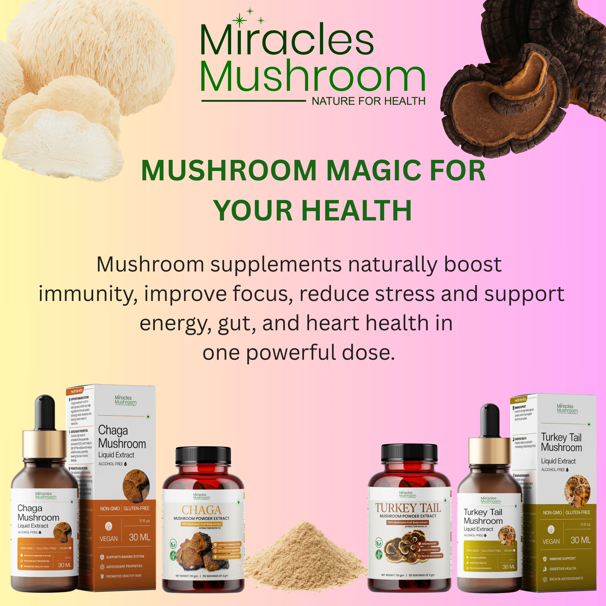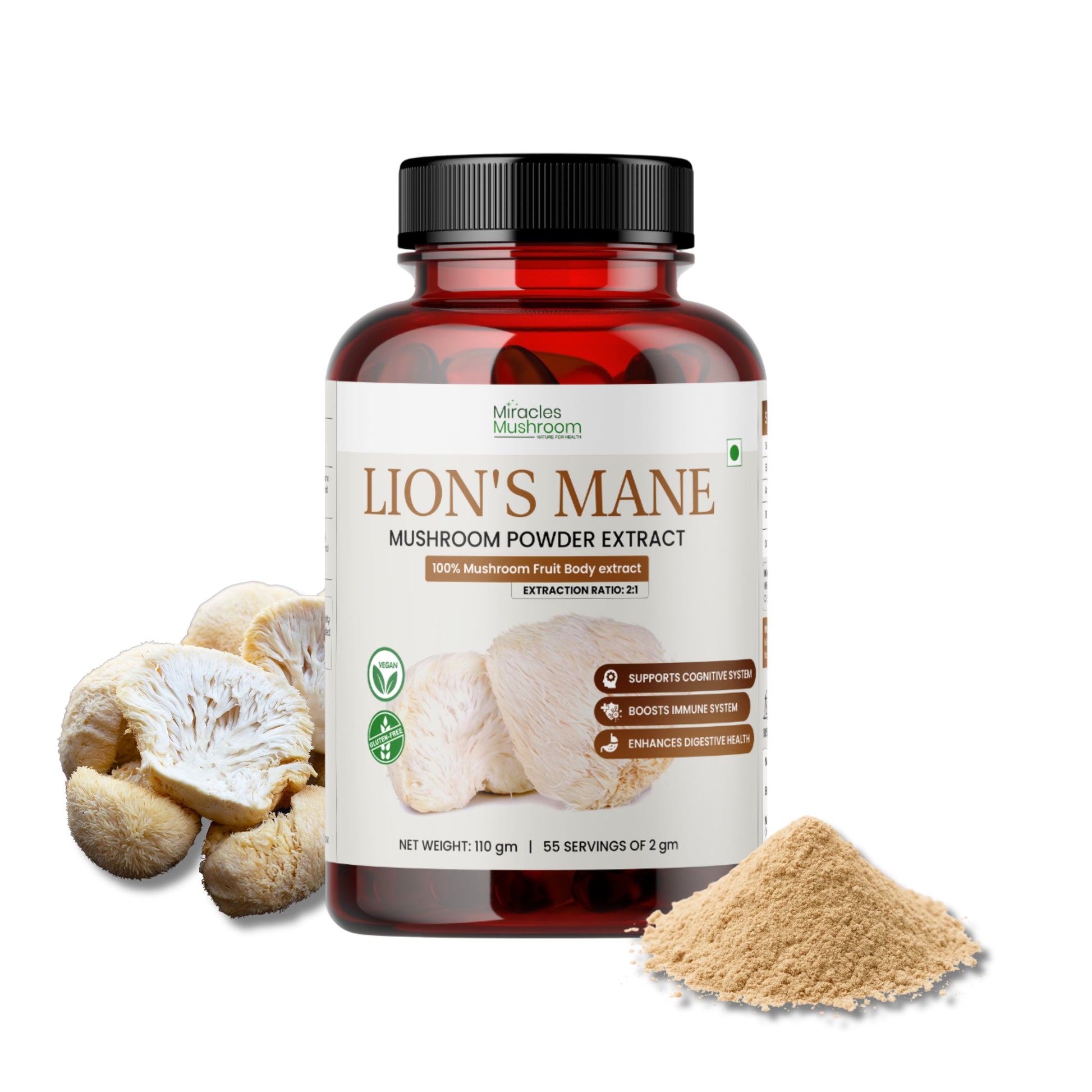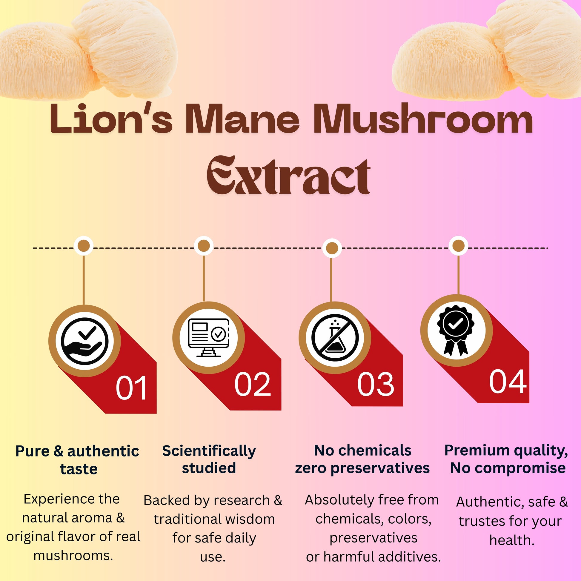 Crafted with 100% Pure Lion's Mane Mushroom Extract (Ganoderma lucidum).