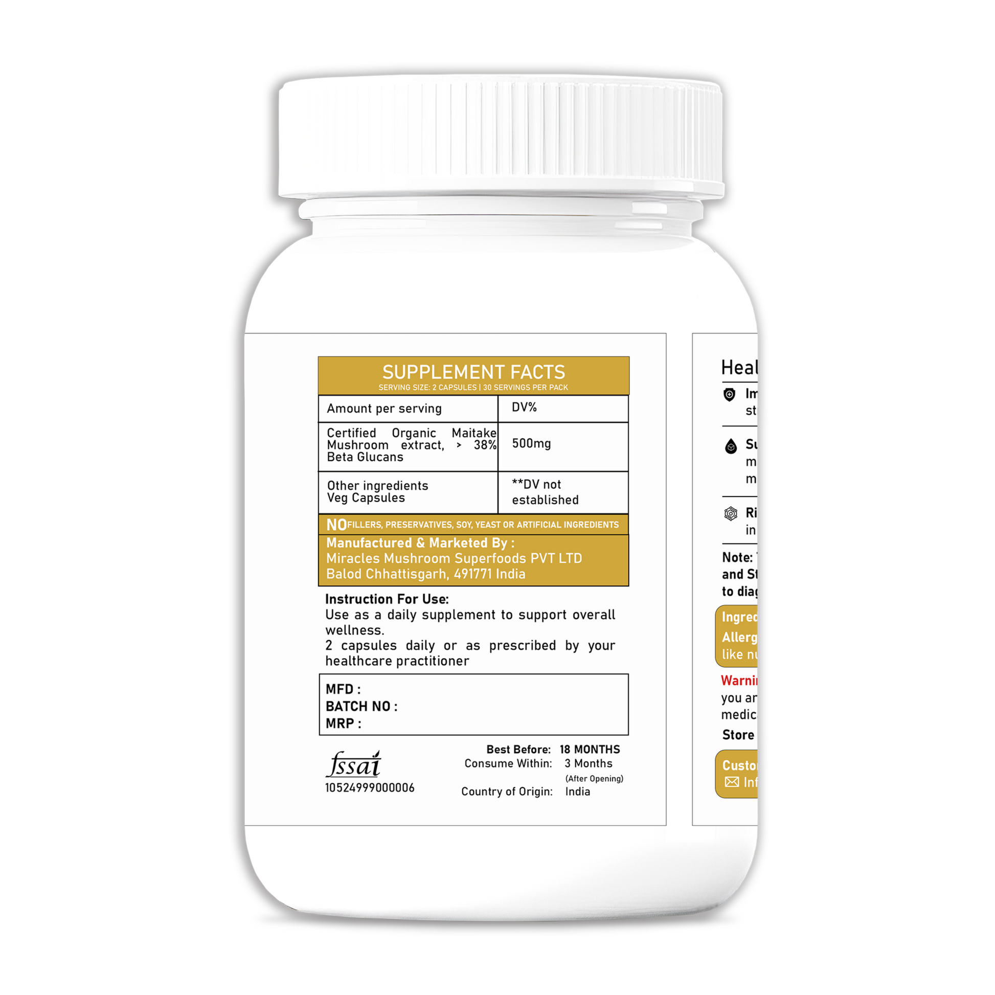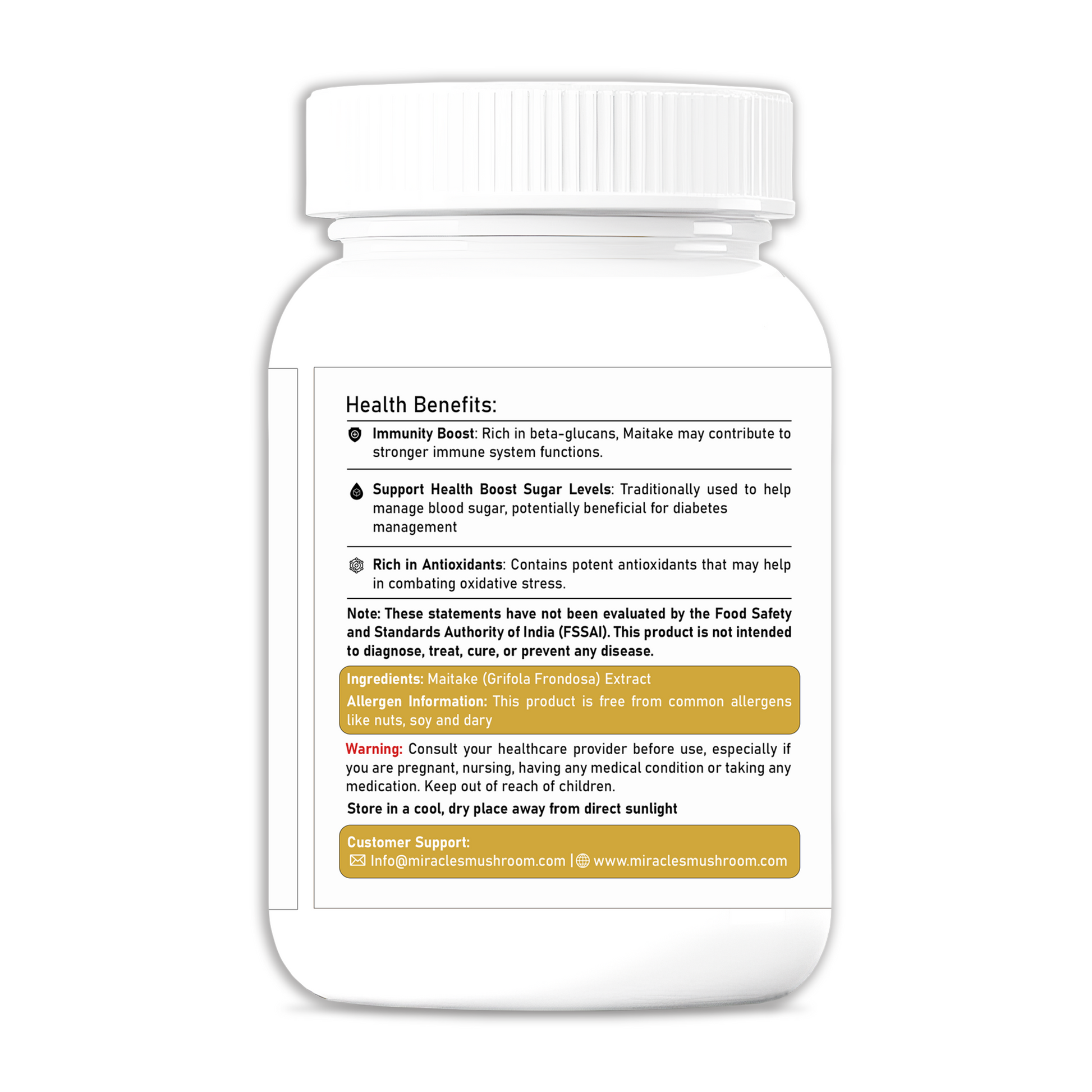 - Formulated with 100% Pure Maitake Mushroom Extract in plant-based vegetable capsules, with no fillers, additives, or preservatives.
