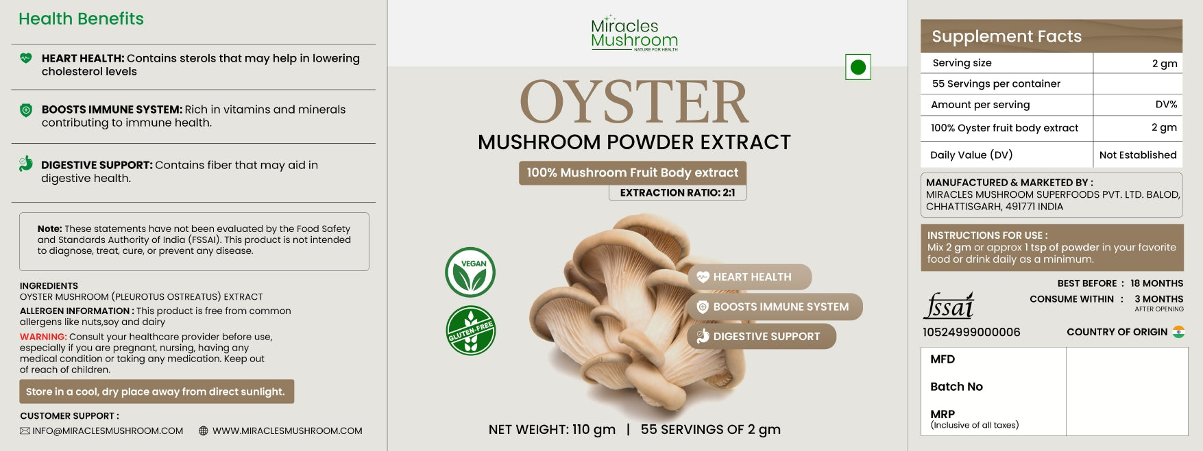 - Ingredients: 100% Pure Oyster Mushroom Extract Powder