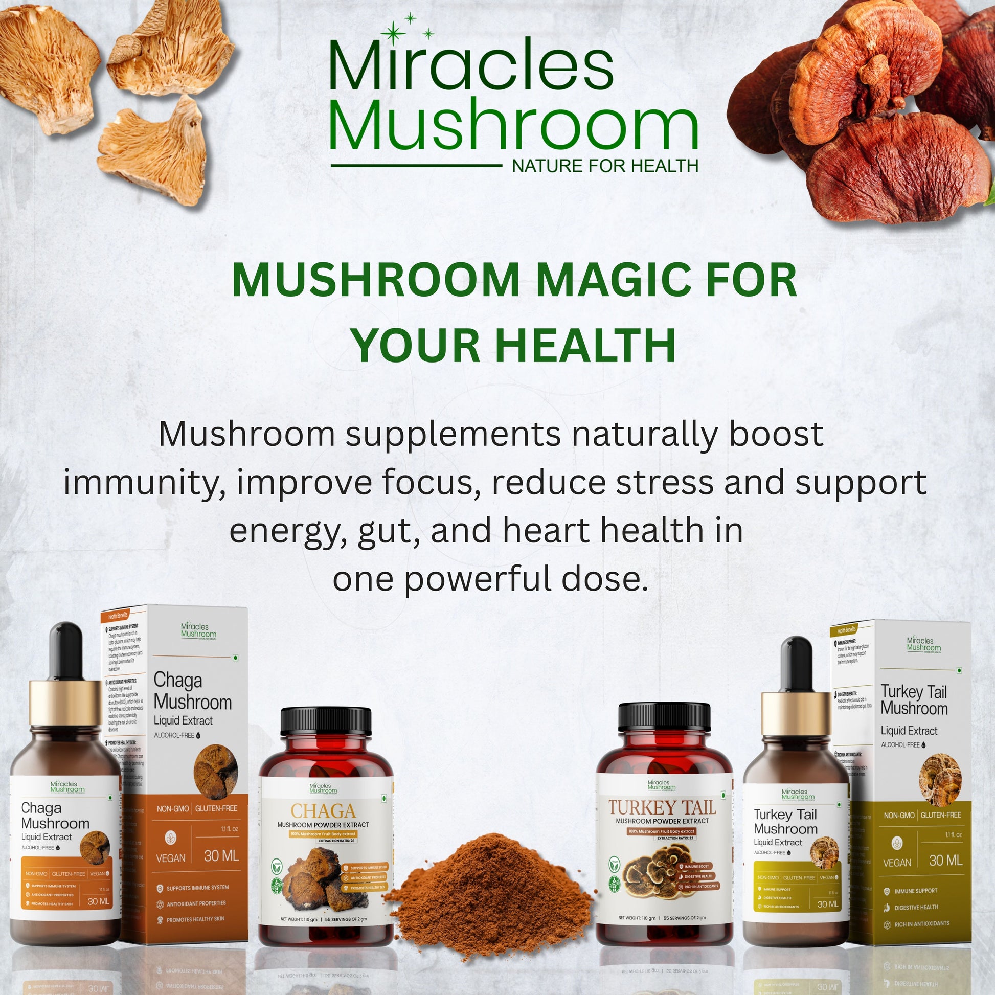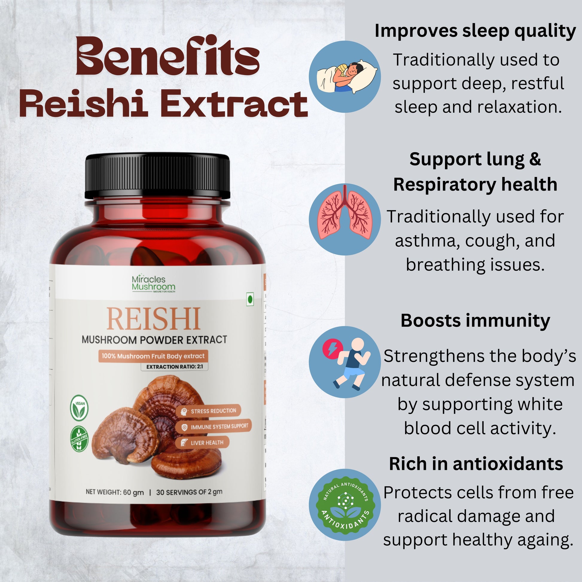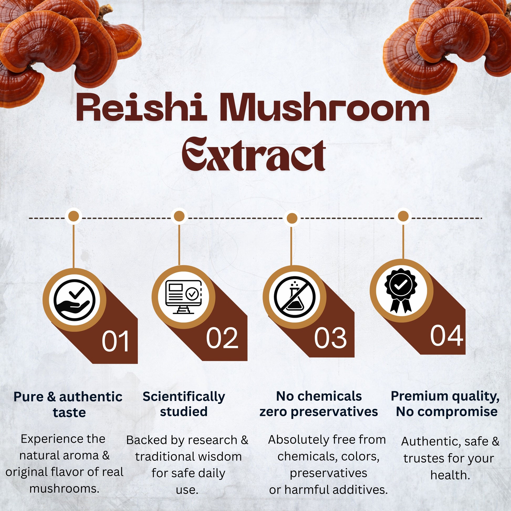 Crafted with 100% Pure Reishi Mushroom Extract (Ganoderma lucidum).
