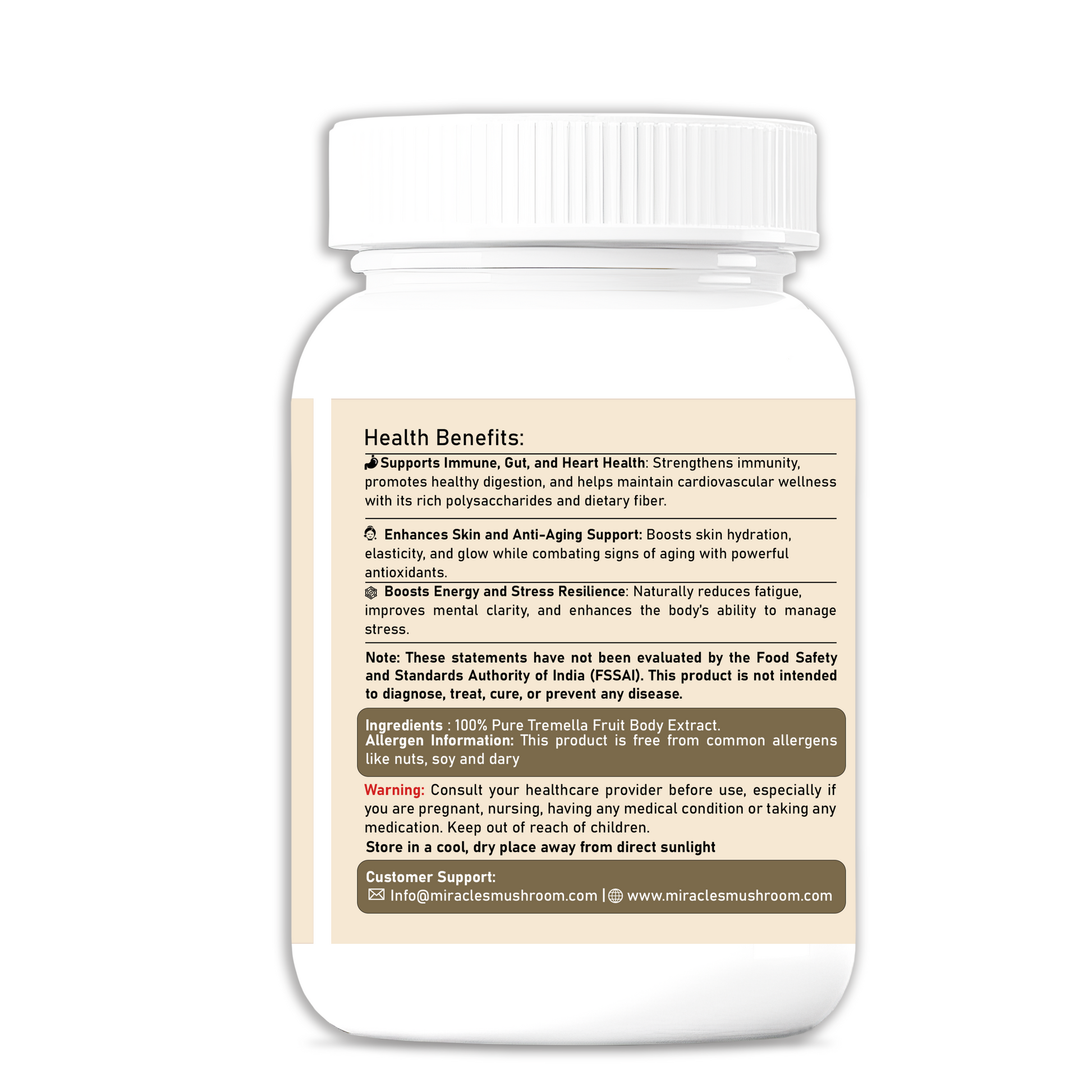 - Made with 100% Pure Tremella Mushroom Extract in plant-based vegetable capsules.