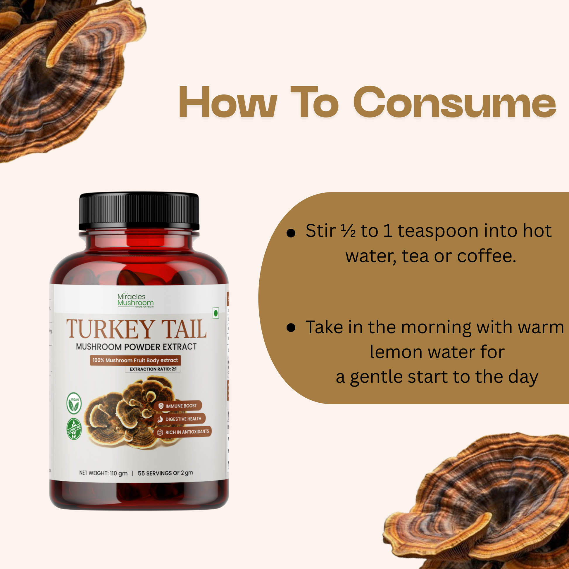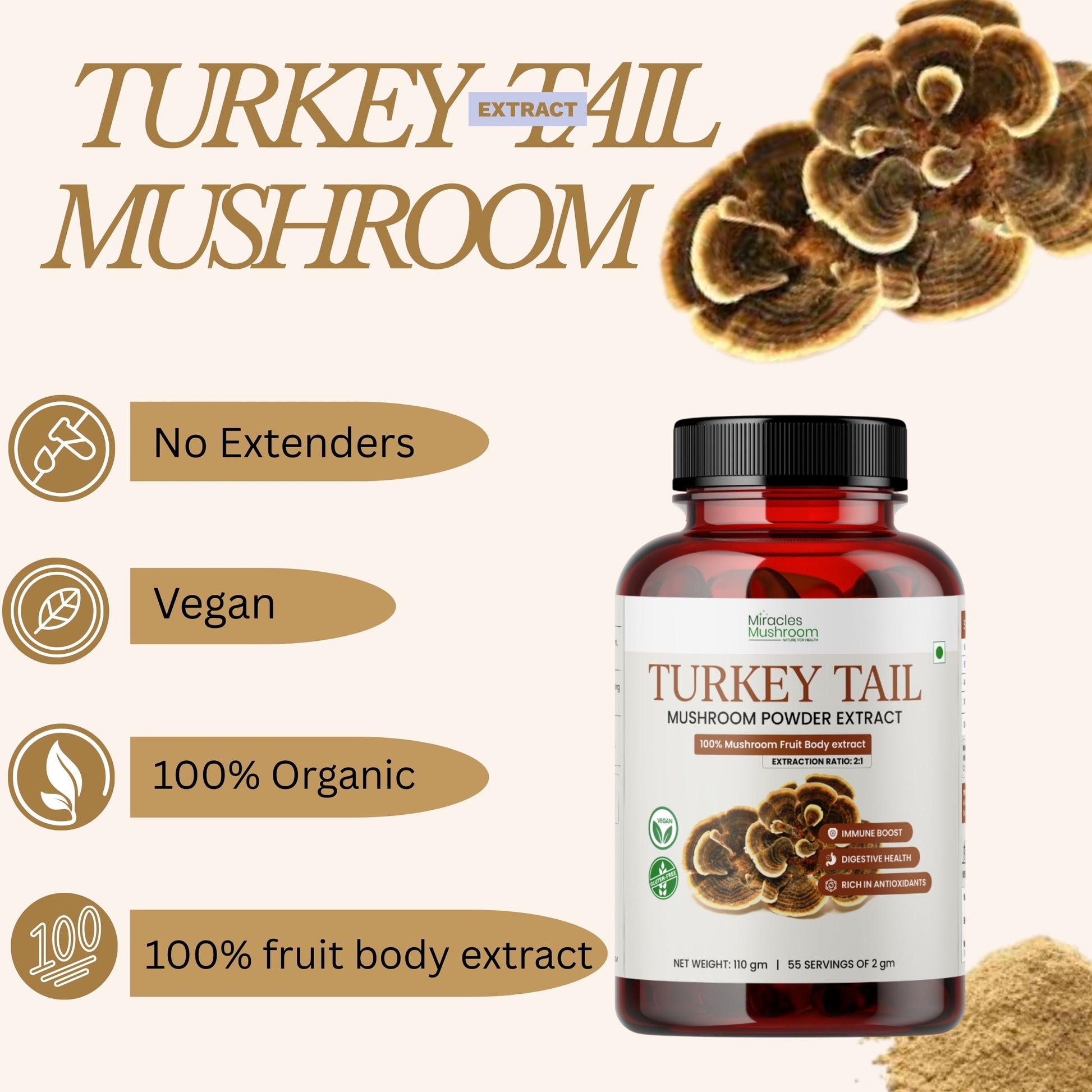 - Ingredients: 100% Pure Turkey Tail Mushroom Extract Powder (no fillers, additives, or preservatives)